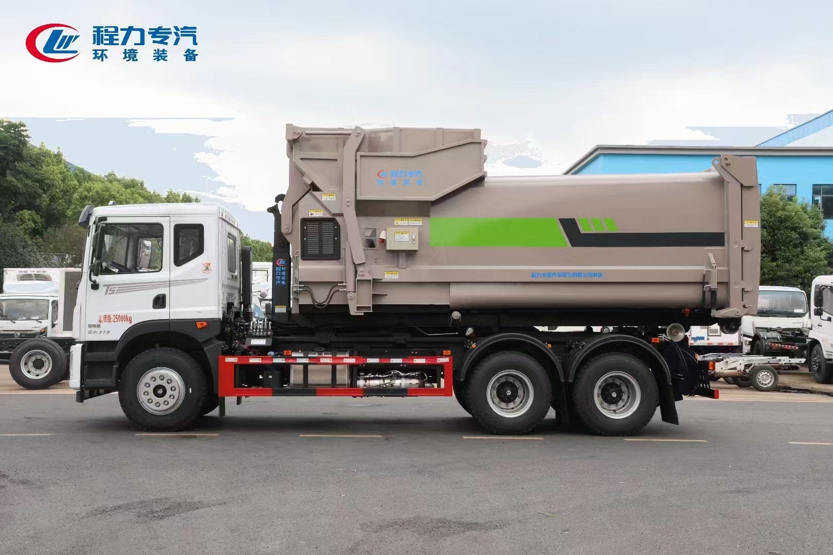 ??????湖北程力汽車:程力專汽東風華神后雙橋勾臂垃圾車+移動壓縮箱產(chǎn)品型號及參數(shù)配置,程力專汽東風華神后雙橋勾臂垃圾車+移動壓縮箱高清圖片,程力汽車系列程力專汽東風華神后雙橋勾臂垃圾車+移動壓縮箱最新報價請撥打客服熱線。車輛主要配置 產(chǎn)品名稱: 程力威牌CLW5253ZXXBHJ車廂可卸式垃圾車 外形尺寸: 828025503170(mm) 排放水平: 國六 貨箱尺寸: (mm) 總質(zhì)量: 25000(Kg) 接近/離去角: 15/19,15/20,15/21() 額定質(zhì)量: 14250,14185(Kg) 前懸后...