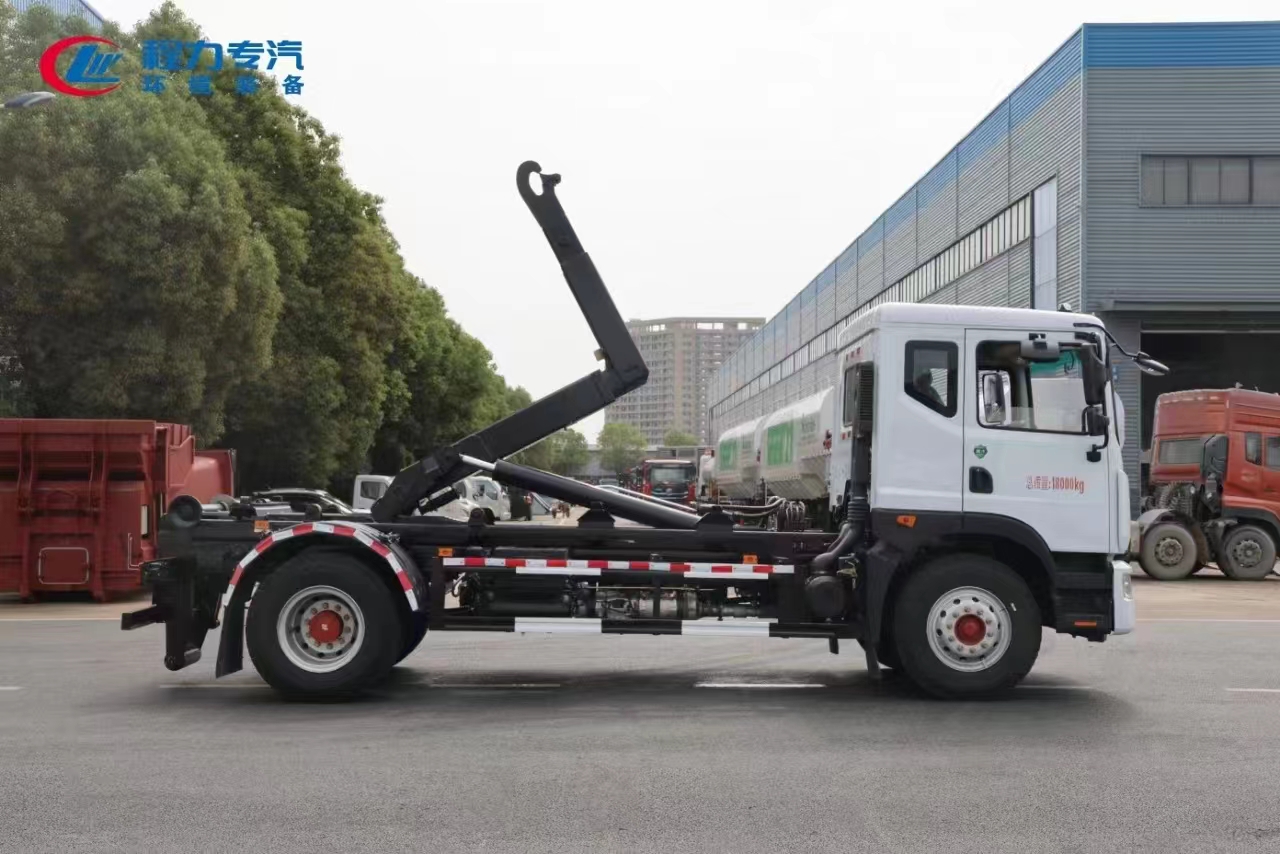 上裝配置 內(nèi)置安全泄壓閥(獨有技術(shù)),配套10-16方勾臂垃圾箱或移動站,主勾臂由高強(qiáng)度板材制作,雙油缸控制,伸縮式主臂,加強(qiáng)型上裝結(jié)構(gòu),液壓支腿,橫向鎖緊,品牌多路閥,液壓油泵,標(biāo)配室內(nèi)外操作(帶遙控),防誤操作,帶平衡閥,液壓鎖。
