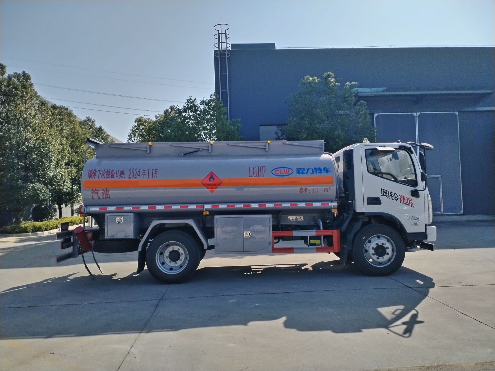 上裝配置 嚴(yán)格按照公告容積9.8方制作,Q235B板材,筒體4.2mm厚,封頭4.5mm厚,隔板4.2mm厚,單倉,罐頂壹個(gè)歐標(biāo)罐口, 1個(gè)海底閥帶語音報(bào)警系統(tǒng),帶76/40專用油泵(可泵進(jìn)泵出),選裝大流量加油機(jī)及15米加粗卷盤及槍,全套歐標(biāo)(下裝油,油氣回收,防溢流探桿,防靜電線盤)后爬梯、手動護(hù)欄、工具箱、后保險(xiǎn)杠、側(cè)防護(hù)欄,按2023年新標(biāo)準(zhǔn)制作,其他廠家標(biāo)配,提供底盤證,整車證,上戶發(fā)票。