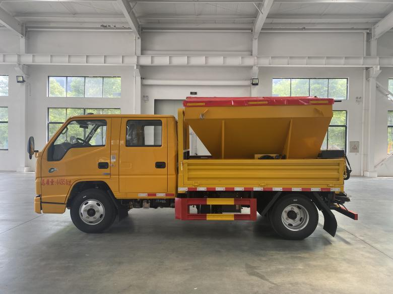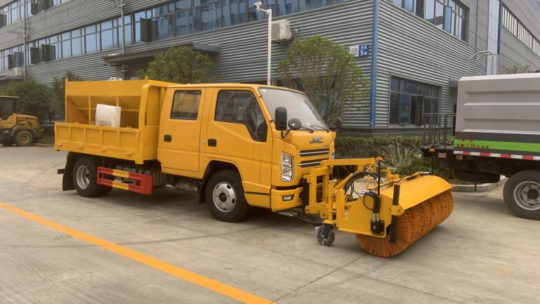 上裝配置 箱體尺寸2600*2060*400mm,箱體內(nèi)裝 3立方融雪撒布機(jī),撒布機(jī)采用 V 型料倉(cāng),結(jié)構(gòu)簡(jiǎn)單可靠,使融雪劑自動(dòng)落料,出料完全,無殘留。駕駛室可加裝2米除雪鏟或者2米除雪滾。