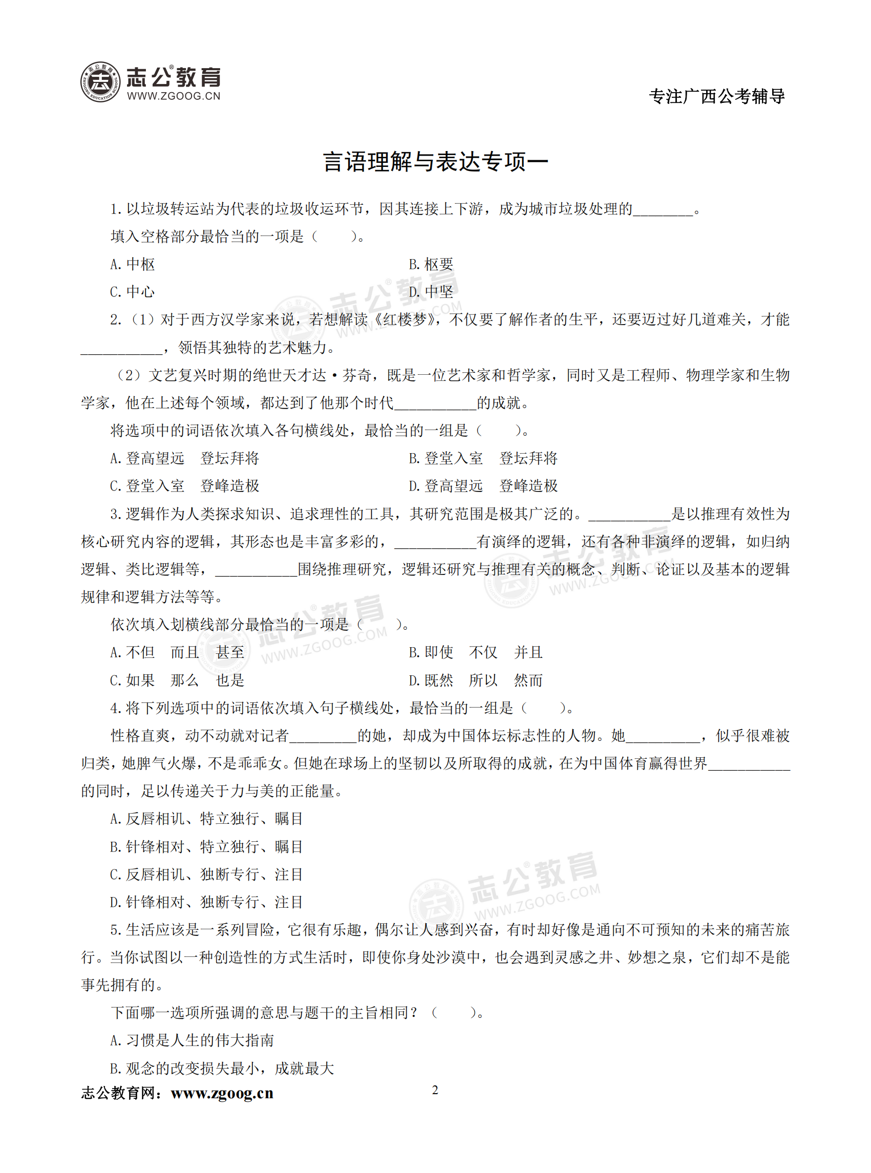 【公考模塊練習(xí)】言語理解題一(試題)