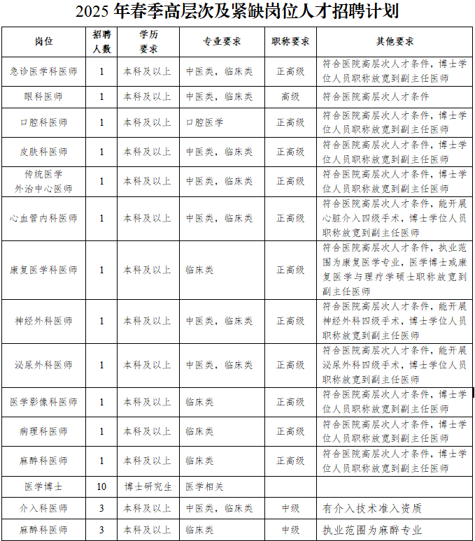本著按需招聘,貫徹“公開、平等、競爭、擇優(yōu)”原則,現(xiàn)將2025年春季高層次及緊缺崗位人才招聘有關(guān)事項公告如下: