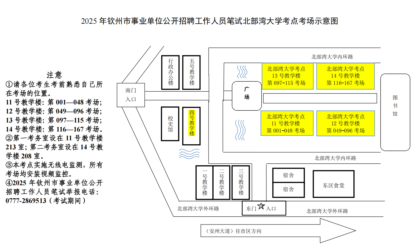 (二)請(qǐng)考生按照本人準(zhǔn)考證上的考點(diǎn)學(xué)校,提前了解學(xué)校所在位置,特別注意不要混淆北部灣大學(xué)考點(diǎn)與北部灣職業(yè)技術(shù)學(xué)??键c(diǎn)。部分考點(diǎn)學(xué)校離市區(qū)有一定距離,請(qǐng)關(guān)注當(dāng)天交通情況和天氣情況,充分考慮路途時(shí)間和天氣因素影響,提前謀劃出行時(shí)間、路線和交通工具,建議提前60分鐘到達(dá)考點(diǎn),以免影響正常入場(chǎng)參加考試。