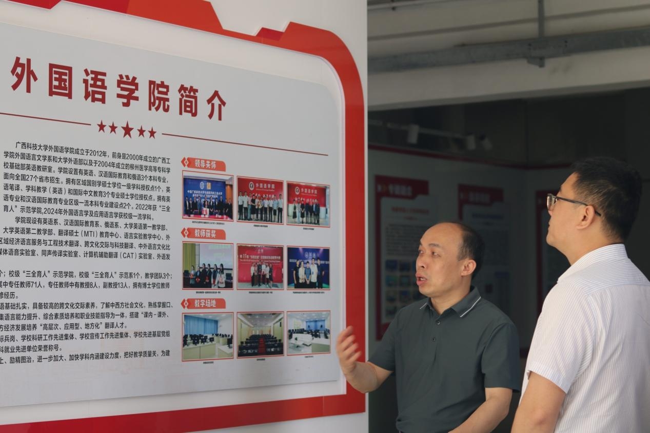 (▲李輝書記帶領參觀團隊了解學院的相關情況)