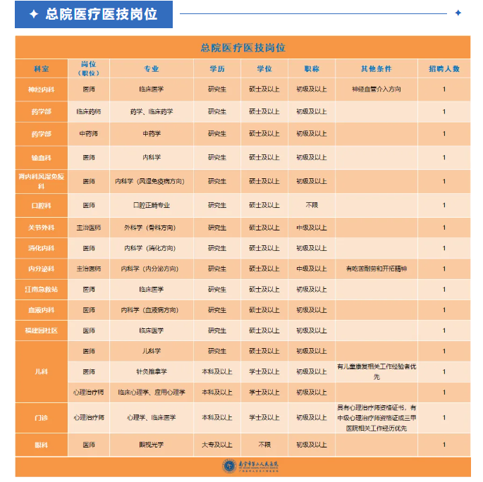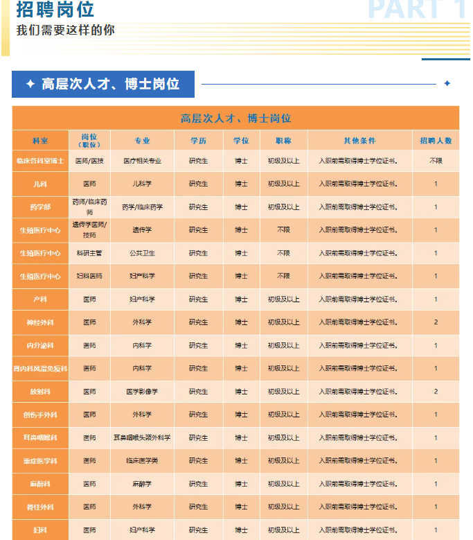 以上崗位均享受醫(yī)院科研獎勵、培訓(xùn)進(jìn)修、晉升職務(wù)職稱等權(quán)利,以及五險一金、用餐補助、帶薪年休假、工會福利等待遇。
