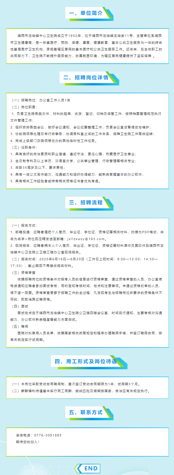 靖西市龍臨鎮(zhèn)中心衛(wèi)生院辦公室人員招聘公告