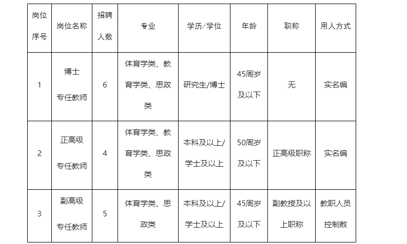 2.報名方法:采用網(wǎng)上報名,符合崗位應(yīng)聘條件人員,請?zhí)顚憽稄V西體育高等??茖W(xué)校2025年應(yīng)聘報名登記表》(見附件),并連同求職材料一并打包壓縮后發(fā)送至人事處郵箱:gxtzzzrsc@126.com,郵件和附件名稱統(tǒng)一命名為“高層次人才+博士/正高/副教授+姓名”。應(yīng)聘者須按照要求提交報名材料,不按照要求提交者將視為無效報名,資格審查不予通過。