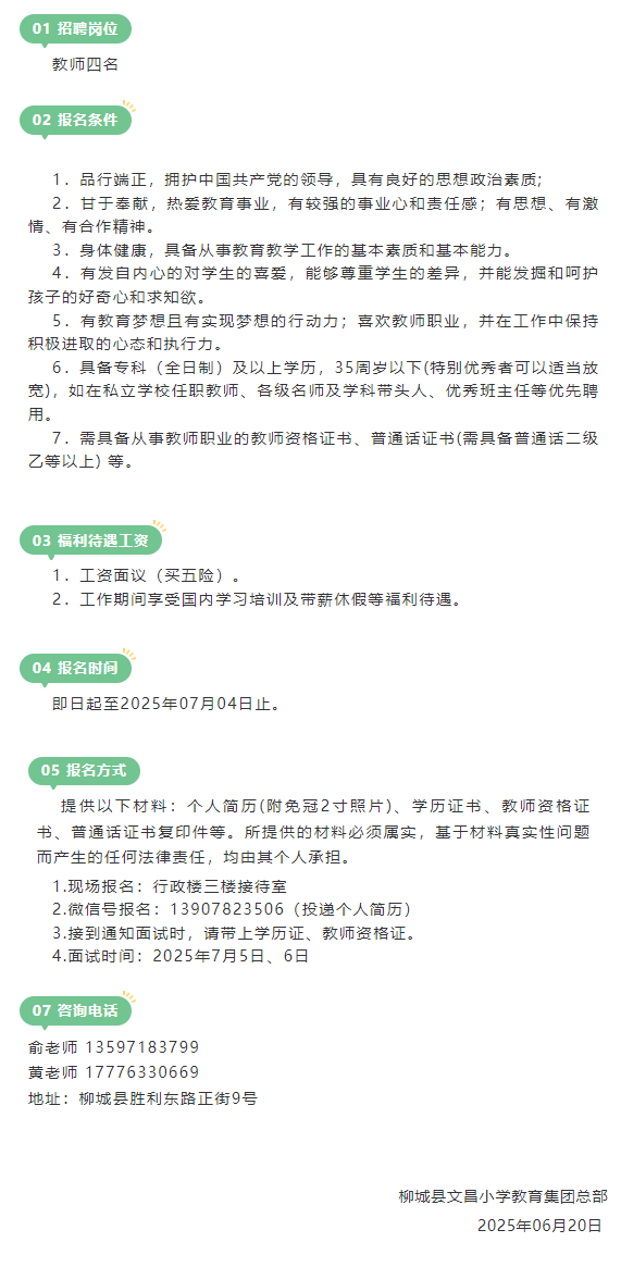 原文標題:2025年柳城縣文昌小學教育集團總部教師招聘公告