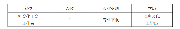 為進(jìn)一步加強(qiáng)工會(huì)工作,我會(huì)根據(jù)自身工作需求,現(xiàn)面向社會(huì)公開招聘社會(huì)化工會(huì)工作者2名?,F(xiàn)將招聘的有關(guān)事項(xiàng)公告如下: