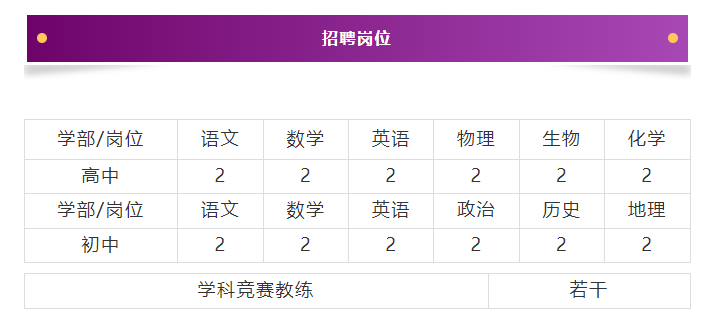 1.薪酬優(yōu)厚:青年教師8-10萬,骨干教師14-20萬,學(xué)科帶頭人20-30萬,學(xué)科競(jìng)賽教練、教齡豐富且成績(jī)優(yōu)秀者面議。