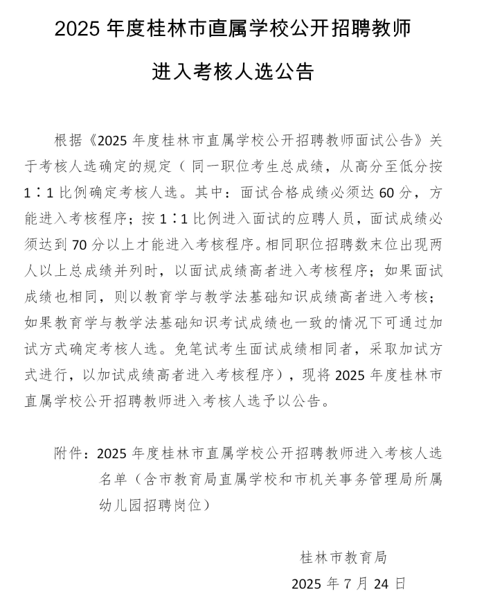 原文標題:2025年度桂林市直屬學(xué)校公開招聘教師進入考核人選公告