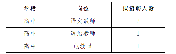 1.學(xué)科教師:大學(xué)本科學(xué)歷,專業(yè)符合相應(yīng)學(xué)科要求(有學(xué)士學(xué)位、高中教師資格證的優(yōu)先聘用);高校大四在校本科生可通過教育實(shí)習(xí)形式應(yīng)聘。