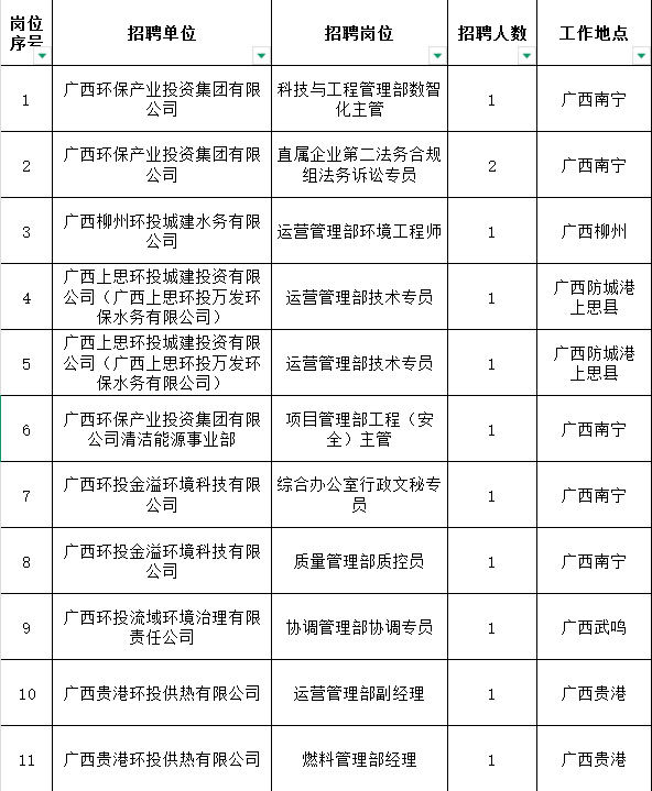 附件:廣西環(huán)保集團(tuán)2025年第三次公開(kāi)招聘崗位表