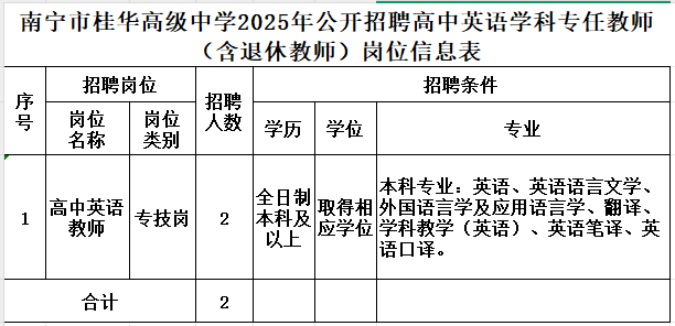 2.現(xiàn)場報名。應(yīng)聘者持有關(guān)材料直接到南寧市桂華高級中學校辦報名。