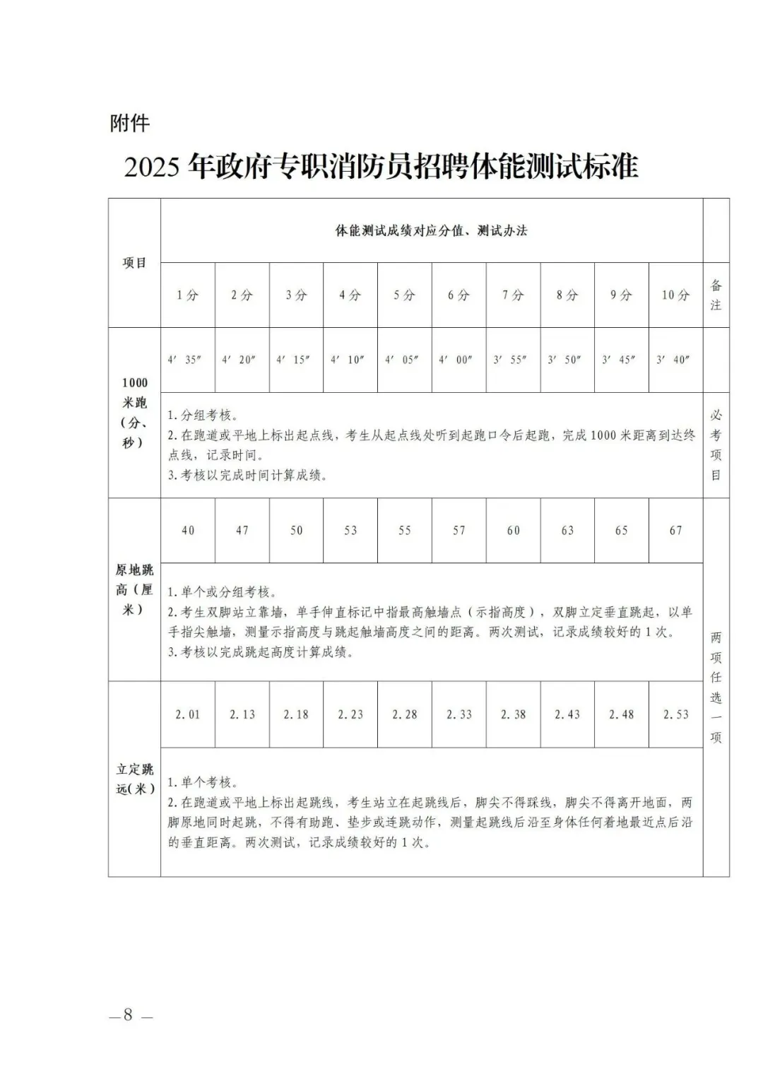 注意事項:應(yīng)聘人員須參加體能測試,并當(dāng)場簽訂《天等縣消防救援大隊政府專職消防員招聘體能和崗位適應(yīng)性測試招聘對象承諾書》,體能測試有兩項及兩項以上不得分的視為不合格(標準參照附件)。未按時參加或因身體原因無法測試者,視為自動放棄。