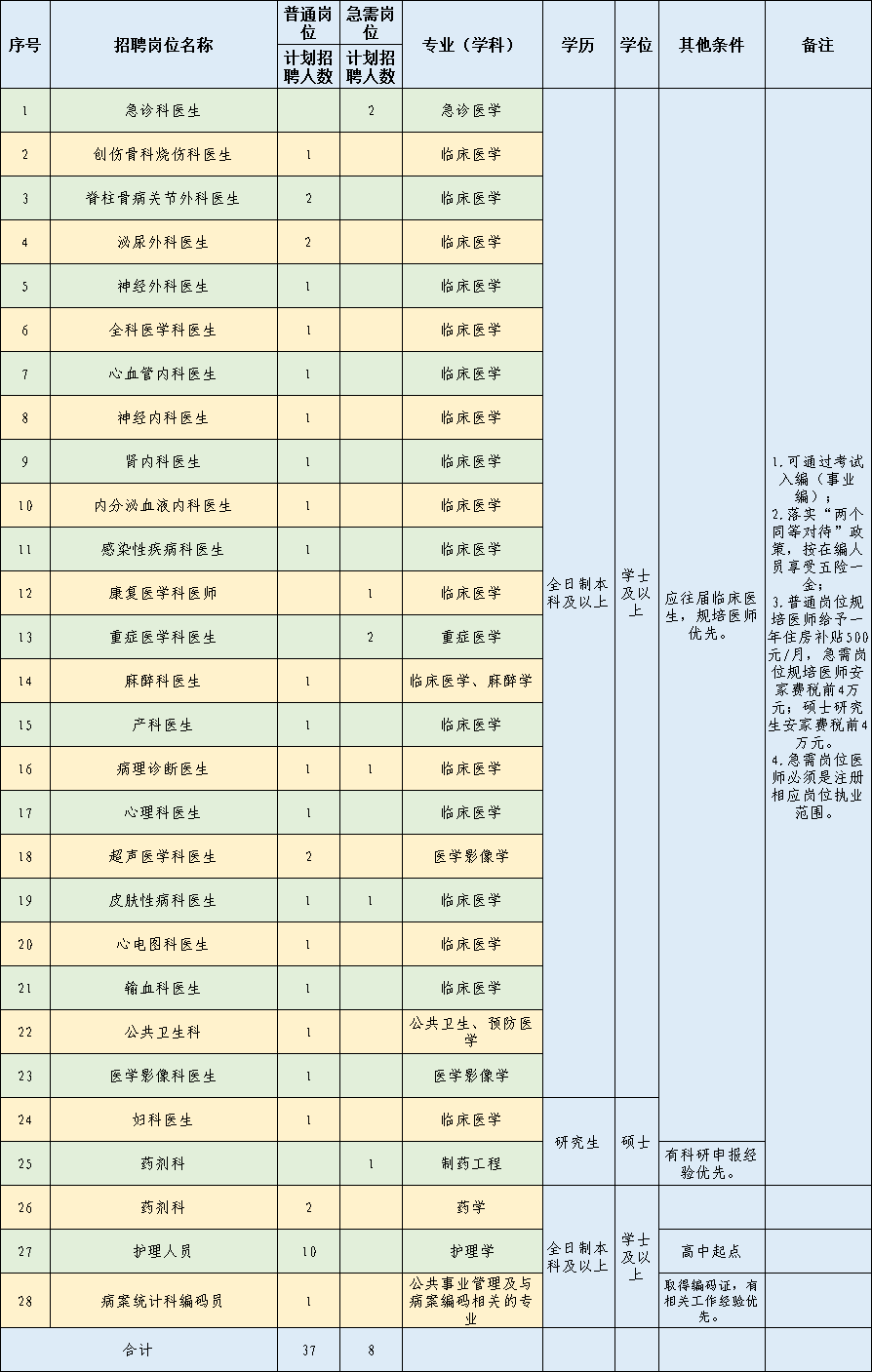 2.具有規(guī)培合格證的醫(yī)生依照國衛(wèi)辦科教發(fā)〔2021〕18號文件,落實(shí)“兩個同等對待”政策,即“面向社會招收的普通高校應(yīng)屆畢業(yè)生培訓(xùn)對象培訓(xùn)合格當(dāng)年在醫(yī)療衛(wèi)生機(jī)構(gòu)就業(yè)的,在招聘、派遣、落戶等方面,按當(dāng)年應(yīng)屆畢業(yè)生同等對待。對經(jīng)住培合格的本科學(xué)歷臨床醫(yī)師,在人員招聘、職稱晉升、崗位聘用、薪酬待遇等方面,與臨床醫(yī)學(xué)、中醫(yī)專業(yè)學(xué)位碩士研究生同等對待”。普通崗位規(guī)培醫(yī)師給予一年住房補(bǔ)貼500元/月,急需崗位規(guī)培醫(yī)師安家費(fèi)稅前4萬元,急需崗位醫(yī)師必須注冊相應(yīng)崗位執(zhí)業(yè)范圍。